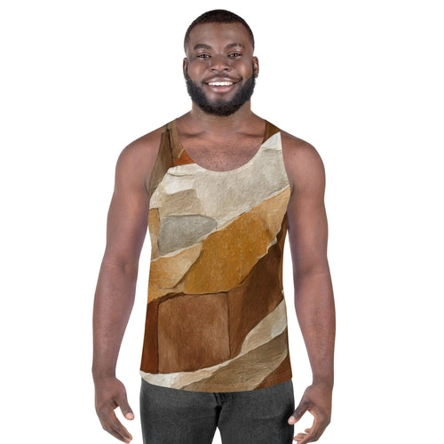 Mens Stretch Fit Tank Top, Abstract Stone Pattern 6672. Our men's tank top is a versatile essential that combines comfort and style seamlessly. Crafted from lightweight and breathable fabric, this tank top ensures optimal ventilation and comfort for any activity, whether you're hitting the gym or enjoying outdoor adventures. The sleeveless design and classic crew neckline offer timeless appeal, making it easy to pair with any bottoms for a laid-back look. The relaxed fit provides freedom of movement, making it ideal for active days or simply lounging at home. Elevate your wardrobe with our essential men's tank top, designed to keep you looking and feeling great in any situation.